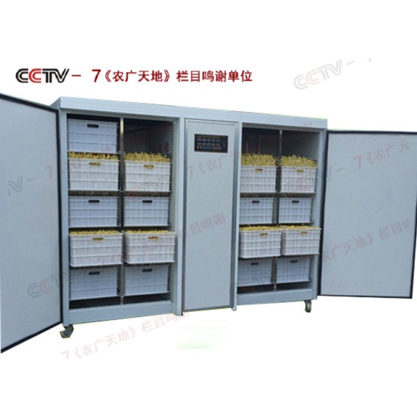 育芽箱:40個(里外雙排,如下圖) 日耗電(度):18 日耗水(m3):6 外形尺寸(m):2.6×1.4×1.9 整機重量(KG):480