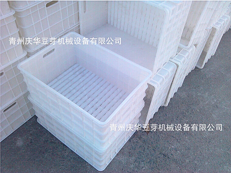 4)周轉箱的外徑尺寸:0.61m*0.44m*0.26m(長寬高),特點:波浪底,食品級的環(huán)保LLDPE材料,無味,結實不變形,不變色,承載強度大,長條形排水孔,豆芽不堵孔,不積水存水,透水效果好,防止?jié)穸冗^大而導致爛牙。